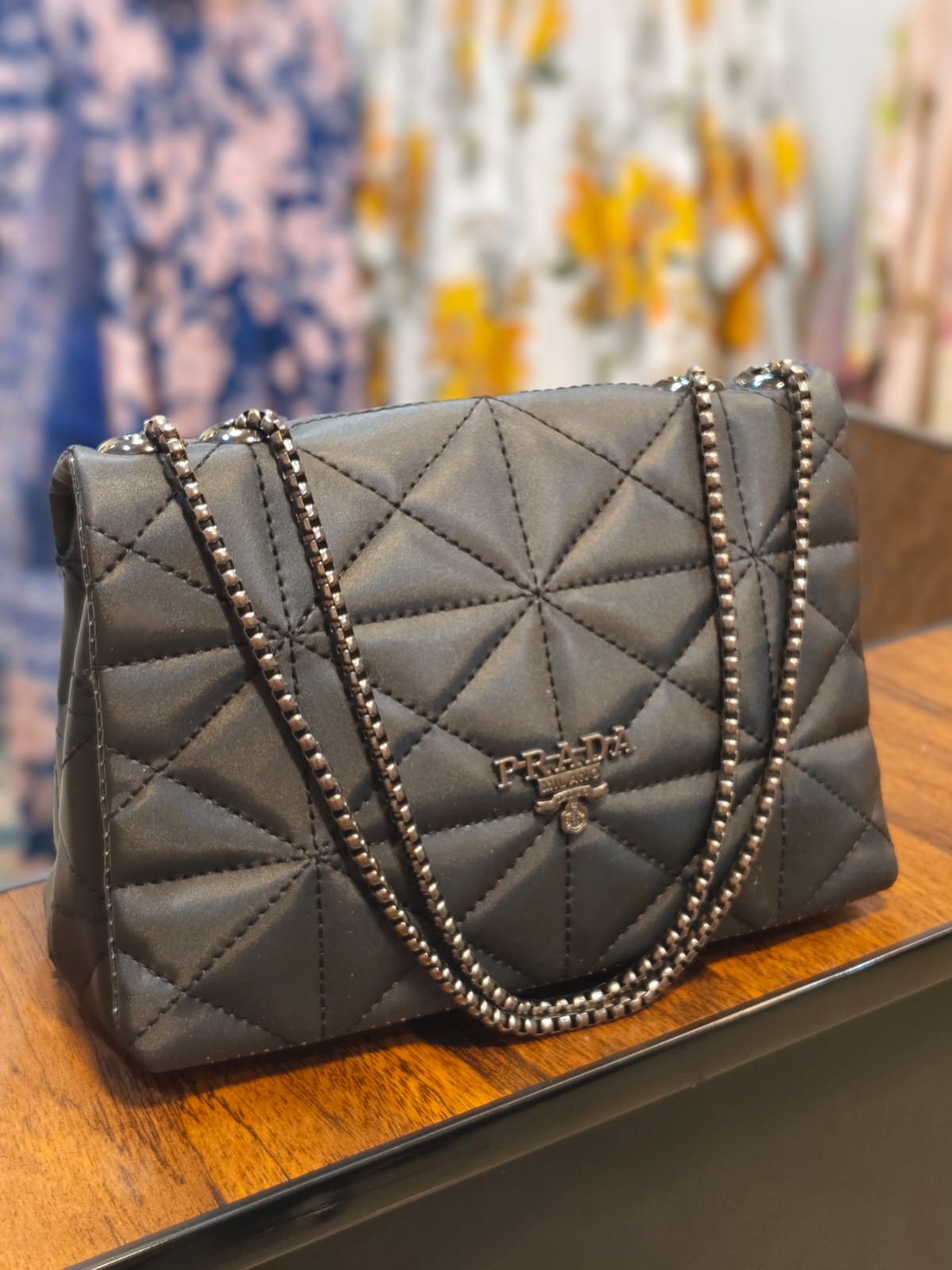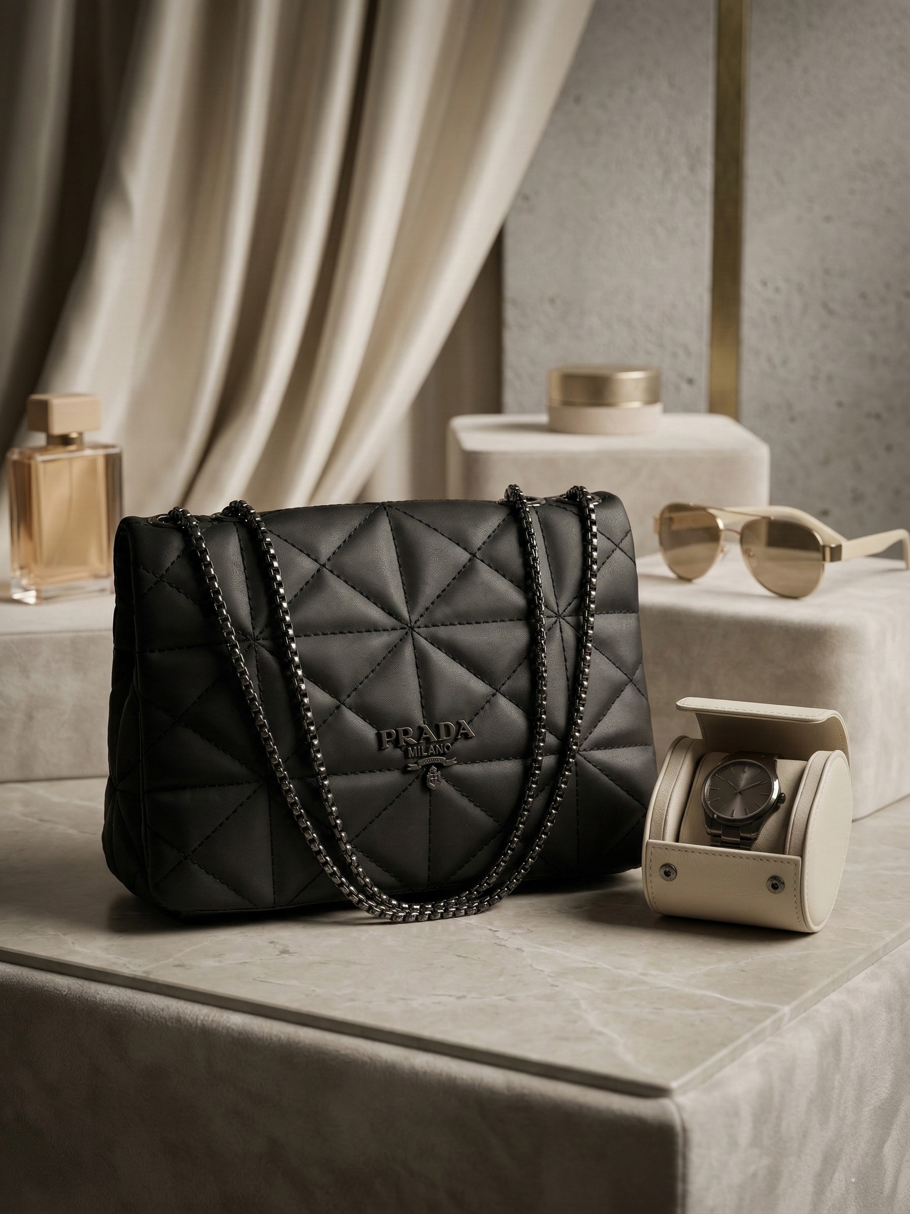 The ultimate essential for the modern wardrobe, The Aura Quilt is the definitive expression of timeless luxury and edgy sophistication. Rendered in a deep, matte onyx black, this bag elevates the iconic geometric silhouette to its most versatile and powerful form.