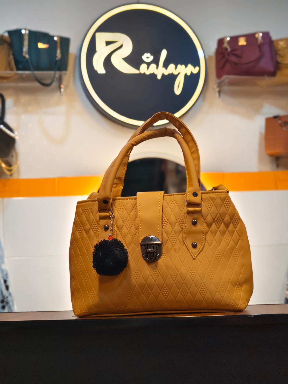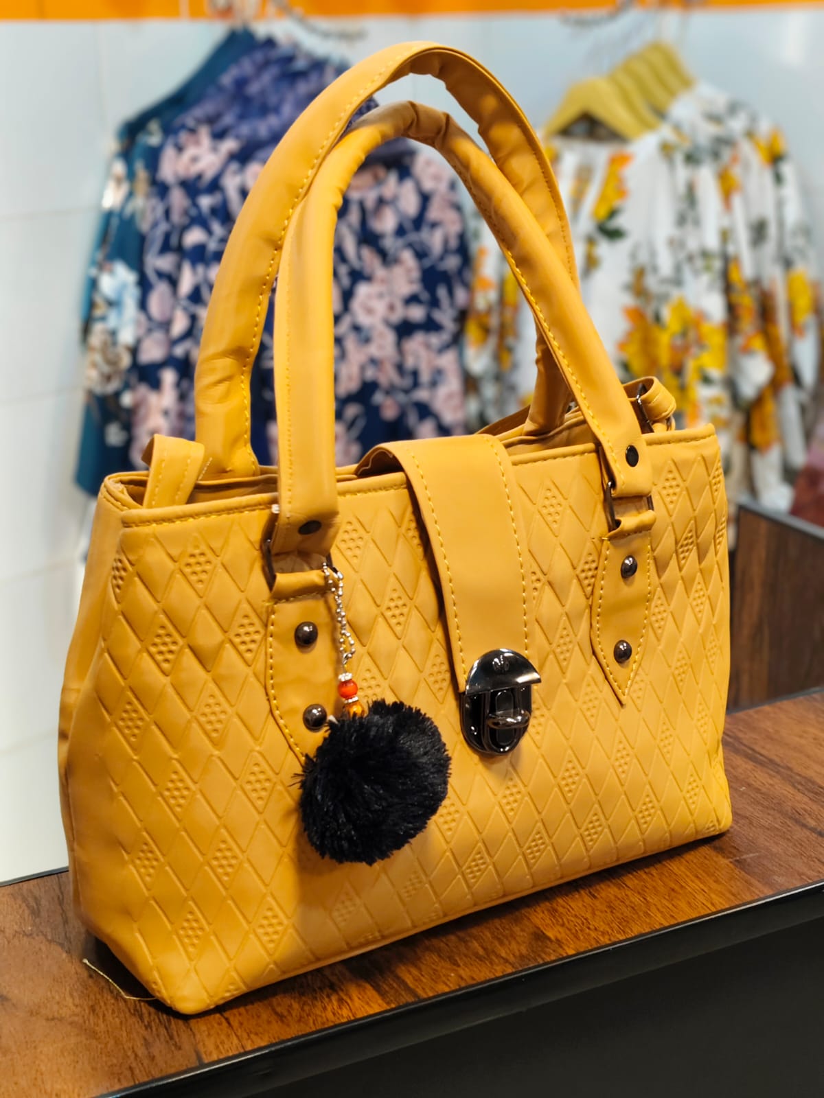 This handbag is a vibrant burst of sunshine and sophistication, offering a high-energy mustard-saffron palette that perfectly complements its intricate textural detailing.