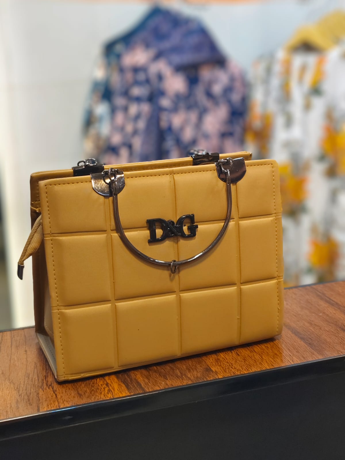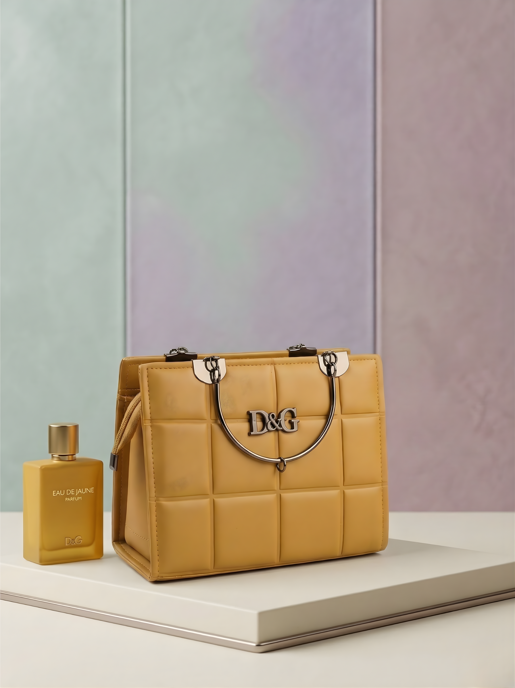 Art-Deco Inspired Metal Handles: Featuring sleek, semi-circular gunmetal handles, this bag offers a unique industrial aesthetic that serves as a cool contrast to the warm saffron body.