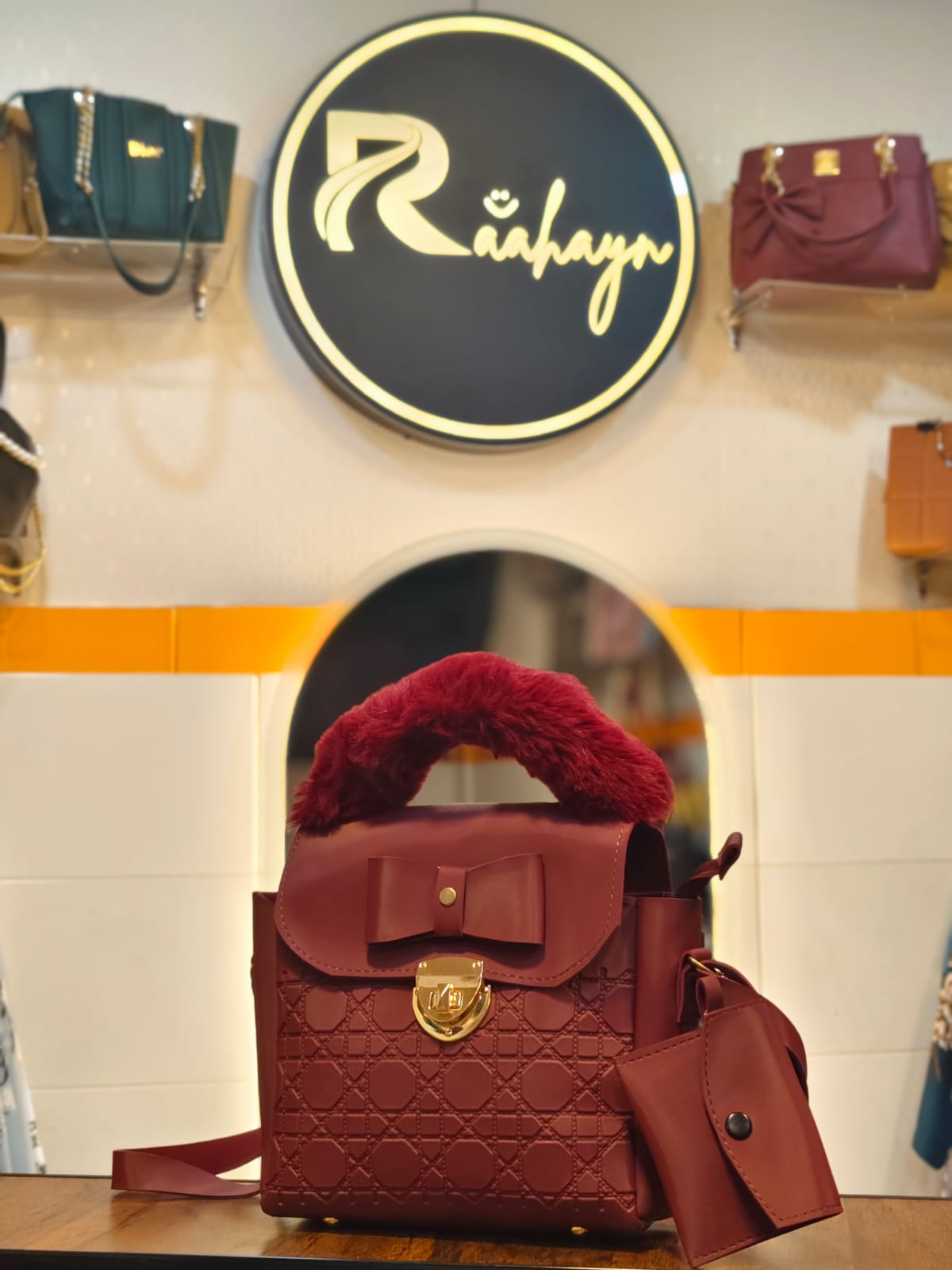 Plush Statement Handle: A luxurious, faux-fur wrapped top handle offers a striking textural contrast and a soft, comfortable grip for hand carrying.