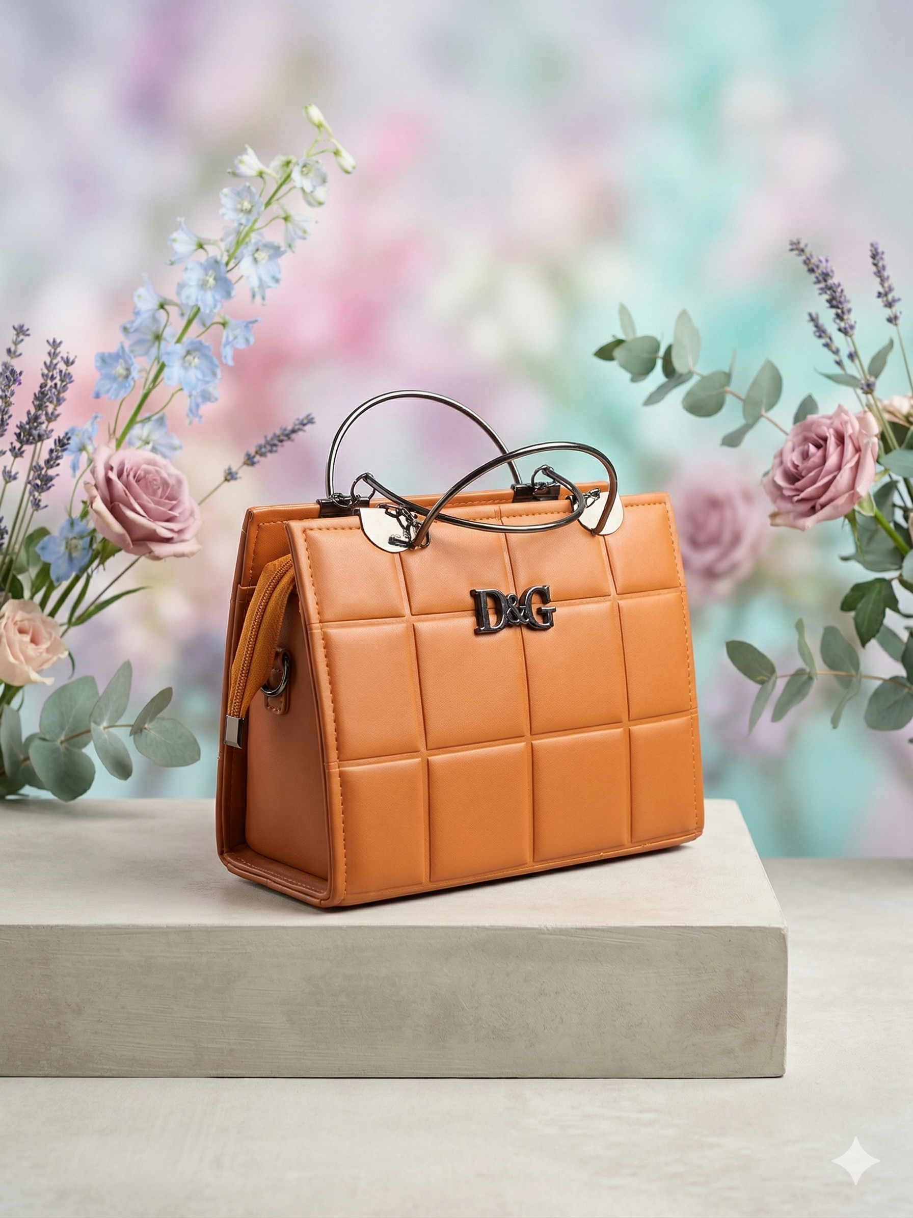 Redefine your daily aesthetic with The Quadra, a structured masterpiece that combines bold geometric lines with high-fashion hardware. Drenched in a warm, vibrant burnt orange, this bag is designed for the woman who demands both architectural precision and a pop of personality in her accessories.